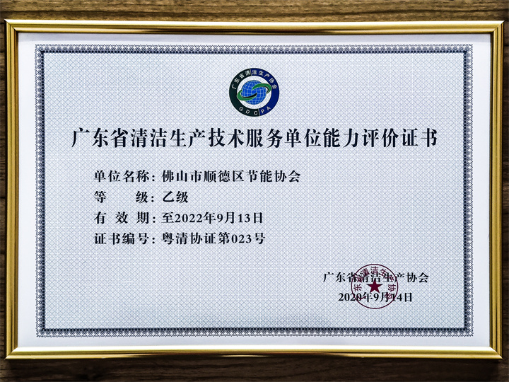 广东省清洁生产技术乙级服务单位